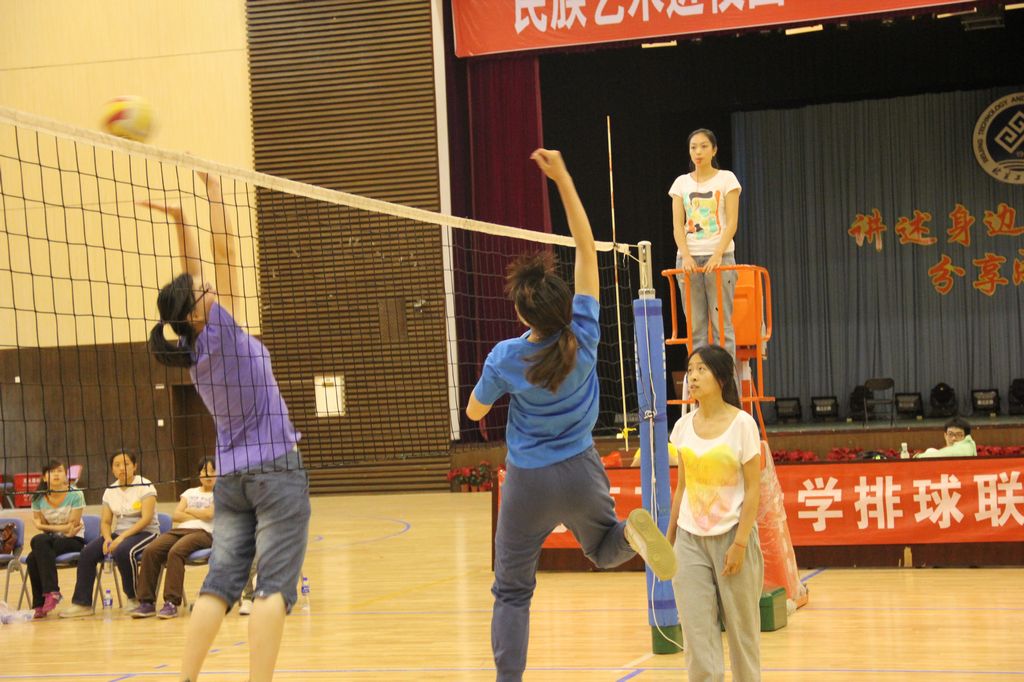 比赛在一声哨声中开始了。88直播 与计算机与信息工程88直播 的观众们自发地为女排选手们呐喊助威,台下比赛激烈进行着,而观众席上也略显火药味。