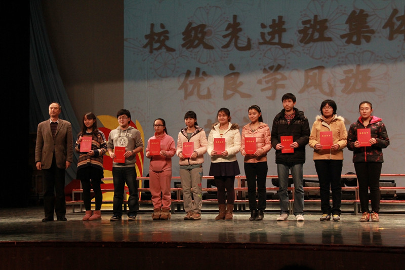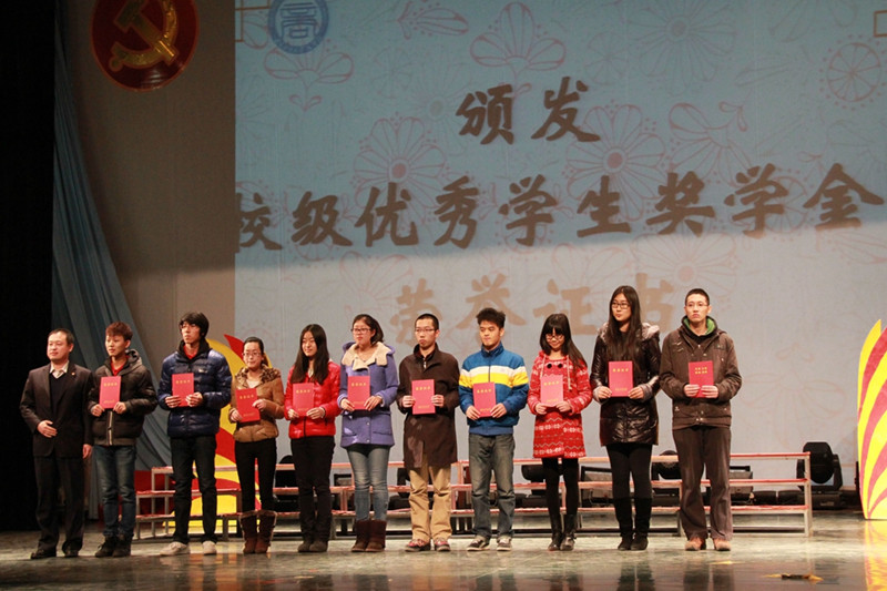 在文体馆举行2012—2013年度学生表彰大会暨“一二·九”合唱比赛。学校党委副书记卢思锋、学生处副处长兼校团委书记吕良以及88直播
